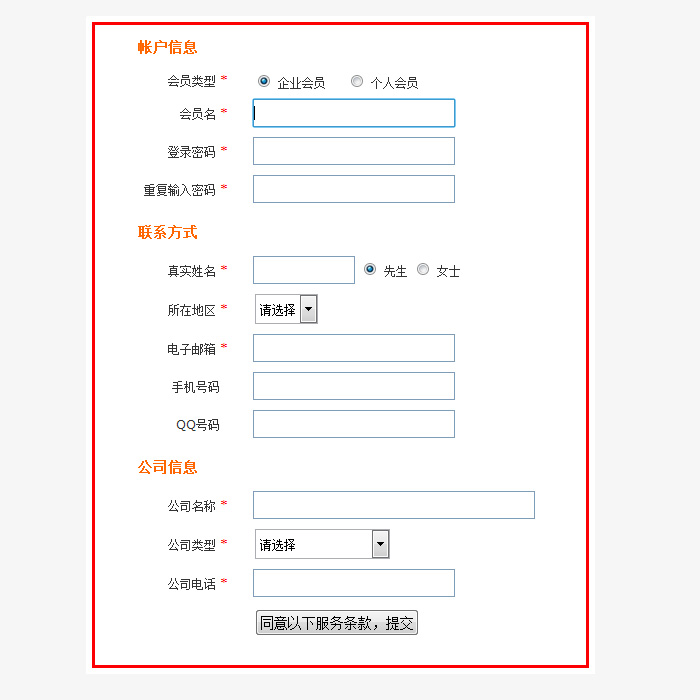 第二步:填寫注冊信息,包含*的選項為必填項。