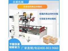 自動角邊封箱機人工調節紙箱大小規格,自動同時四個角邊封封箱;操作簡單、使用方便、容易調整、封箱速度快、效率高、堅固耐用,適合配套自動化后道包裝流水線全天候大量使用。采用特殊設計,膠帶粘貼,撫平,整齊美觀。用印字膠帶,更可提高新產品形象。廣泛應用在家用電器、紡織、食品、百貨、醫藥、化工等行業。可與自動封箱機配套使用,完成“工”字型封箱。