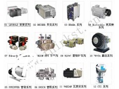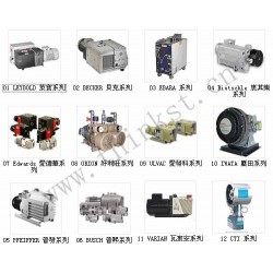 Edwards愛德華系列真空泵, ALCATEL阿爾卡特系列真空泵,LEYBOLD萊寶系列真空泵,BECKER 貝克系列真空泵, BUSCH 普熙系列真空泵, ORION 好利旺真空泵,ULVAC優貝克真空泵,PFEIFFER 普發系列真空泵, Rietschle 里其樂真空泵, IWATA巖田系列真空泵,CTI真空泵,EBARA真空泵, SHIBAURA真空泵, TOKUDA芝浦系列真空泵, HITACHI 日立系列真空泵, KASHIYAMA 日本堅山工業真空泵, MITSUVAC 三津海真空泵等,漢鐘真空泵。