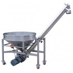 該振動螺旋上料機能夠提升多種粉粒物料,可以與包裝機配套,實現料位跟蹤自動供料,也可單獨在其它場合使用。除電機、軸承、機架外其余為不銹鋼制成(也可按照要求訂做)。