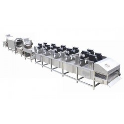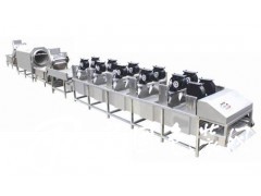 該流水線主要油清洗段、提交升輸送段、震動瀝水段及風干除水段組成,主要用于袋裝食品的高低溫殺菌后,產品表面油垢、污漬的連續清洗及風干,規格形式可按需要訂做,并可直接并入裝箱線實現流水化生產。