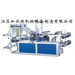 JRT-SCLJ26雙層點段連卷制袋機 適宜專業加工各種原色或彩印的訂本高低壓背心袋(超市手提袋)的 HDPE 、 LDPE 、 PP 材料的筒狀塑料薄膜袋 。 恒溫電熱封合,電熱切斷。整機采用微機電腦控制,步進電機拖料(可選配伺服電機控制系統)。任意定長,步長光電跟蹤,準確、平穩,丟標自動停機,送料采用光電控 . 任意設置堆疊張數,自動計數,整本彈出,自動復位,自動化程度高。