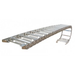 全封閉式鋼鋁拖鏈|全封閉式鋼鋁拖鏈多少錢? 鋼鋁拖鏈的主體是由鏈板(采用優質鋼板經淬火后再拋光鍍鉻/鍍鋅/噴塑處理)、支撐板(擠拉鋁合金)、軸銷(合金鋼)等部件組成.使電纜或橡膠管與拖鏈之間不產生扭曲變形,鏈板經鍍鉻處理外形效果新穎,結構合理,靈巧強度高,該產品鋼性好,不變形.安裝方便,使用可*,易拆裝,不下垂.由于本產品外形精美,可在較大程度上增強機床設備的整體藝術美觀效果,增強我國機床,機械設備在國際市場的競爭能力。 TLG型鋼制拖鏈其使用行程*大為 40 米,適用于所有傳動方式。可隨意加長和縮短。此外,可通過改變銷軸獲得改變彎曲半徑。 TLG鋼鋁拖鏈在同一支撐板上放置數量繁多的管線,選擇同一個彎曲半徑,會有部分管線受到損傷,可選擇裝置不同的彎曲半徑拖鏈,上下復合將線管進行分割。