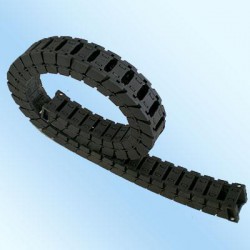 TL鋼制拖鏈多少錢:TL鋼制拖鏈廠家哪里好?華德機床歡迎您! TL鋼制拖鏈產品特性:拖鏈主體是由鏈板(優質鋼板鍍鉻)、支撐板(擠拉鋁合金)、軸銷(合金鋼)等部件組成,使電纜或橡膠管等與拖鏈之間不產生相對運動,不產生扭曲變形。TL鋼制拖鏈可適應移動速度40米/分,且噪聲聲壓級不大于68分貝。拖鏈的安全使用壽命不小于100萬次(往復)。產品采用高強度耐磨材料,合金銅為軸銷,提高了產品的耐磨強度。鏈板經鍍鉻處理外形效果新穎,結構合理,不變形,靈巧強度高。彎曲靈活、阻力小、噪音極小。安裝方便、易拆裝。