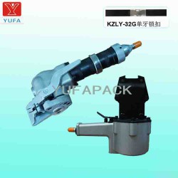 KZLY-32G高強(qiáng)度氣動(dòng)鋼帶(捆扎)打包機(jī),兩個(gè)必須配合一起使用,才能完成全部打包動(dòng)作(拉緊、鎖扣、折斷)。具有重量輕,操作簡便,安全可靠,捆扎迅速牢固,且勞動(dòng)強(qiáng)度低,適用于鋼材、管材、板材等物體的打包。