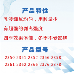 公司專注于生產包裝印刷用水性乳液系列粘合劑。主要產品:水性干法復膜膠,水性濕法復膜膠,裱糊膠,水性封口膠,油性封口膠,水性軟包裝復合膠,水性凹印復膜膠等七大類產品。