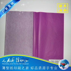 我司彩色拷貝紙為原木槳材料、拉力好、紙質(zhì)優(yōu)、顏色均勻、不易掉色等特點,深受國內(nèi)外客戶喜愛,常用的有14克彩色薄頁紙、17克彩色拷貝紙,現(xiàn) 庫存有四十幾種常用顏色(大紅色,黃色,綠色,咖啡色,粉紅色,桔黃色,黑色,玖紅,藍(lán)色,果綠,紫色,米黃等。量少也可采用印刷各種滿版顏色、金色或銀色等,規(guī)格依客戶要求,也可根據(jù)客戶要求裁成所需尺寸!
