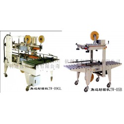 容易調整,可一次完成上下封箱動作,即可單機作業,也可以與流水線配套使用,廣泛應用在家用電器、紡織、食品、百貨、醫藥、化工等行業。采用印字膠帶,更可提高產品形象。