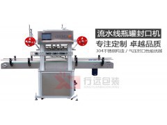行遠包裝專業跟據市場需求開發研制的新型流水線全自動封口機(非標型),適用于封盒、封碗、封罐(大口徑)、封桶等。氣壓自動封口,提高生產效率,省力,封口膜為塑料復合卷材,自動沖裁,自動封口及自動排廢料,解決了一些沒有封口膜的杯子、瓶子、塑料盒及碗的封口難題。深受廣大新老用戶青睞與好評!