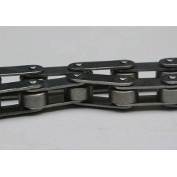 雙節距輸送鏈是把滾子鏈基礎標準GB/T1243-1997《傳動用短節距精密滾子鏈》中所規定的鏈條尺寸,在所有零件的尺寸均保持不變的情況下,只將鏈板孔距增大一倍,從而使鏈條的節距也增大一倍的輸送鏈。實際上雙節距滾子鏈是由短節距精密滾子鏈派生出來的一種輕型鏈條。