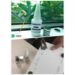 第二步:待處理劑揮發(fā)完畢之后(一般為一分鐘以內(nèi)),再涂華奇士QIS-3008L 金屬?gòu)?qiáng)力接著劑進(jìn)行粘接,常溫十秒左右可初步固定,半小時(shí)之內(nèi)不要使該產(chǎn)品受力,以免錯(cuò)位或移位影響粘接效果!