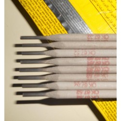 | Fusion time per electrode at 90% I max | kg weld metal/kg electrodes | Number of electrodes/kg weld metal | 安培 | 熔敷率 | 電壓 V | 直徑 |