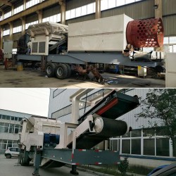2、山東濟南日處理6000噸的石灰石碎石制砂生產線,使用有鋼機械的移動破碎站