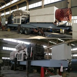 2、山東濟南日處理6000噸的石灰石碎石制砂生產線,使用有鋼機械的移動破碎站