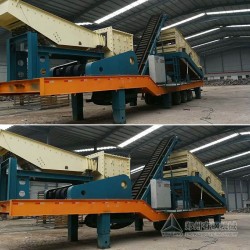 2、山東濟南日處理6000噸的石灰石碎石制砂生產線,使用有鋼機械的移動破碎站