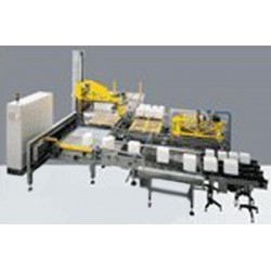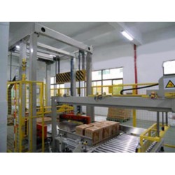 設備構成:入口皮帶輸送、轉向、整列裝置;升降、碼垛裝置;棧板堆積及自動棧板供應裝置;實垛輸出裝置。
