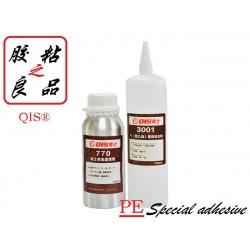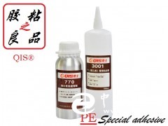 QIS-3001PE聚乙烯膠水, 低白化、低氣味、單組分、中固速、粘接力強、使用方便可使用點膠機與流水線操作、5-20秒定位, 5分鐘可達到90%的強度,100%強度可達到材質斯破不脫膠的效果!經SGS檢測,符合歐盟ROHS、適用于pe塑料粘、MDPE、LDPE、EPDM、ABS、PS、PA、PC、亞克力AS等互相粘接.定位、復合、組裝等功能。、聚乙烯塑料與硅橡膠、鋼鐵、有色金屬、皮革、竹木、玻璃、陶瓷,織物等材料的有效粘接。