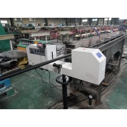 主軸端部裝有導軌和滑塊,滑塊通過“連桿”和“測頭安裝架”與測頭部件連接固定。連桿與主軸成偏心結構,當測頭伸入鋼管后在彈簧的作用下測頭安裝架下部的小輪與鋼管內壁貼緊。測頭安裝架下部的小輪以測頭激光束為中心嚴格對稱,以*保*激光束通過鋼管的中心,使測量值為鋼管的真實內徑。當主軸旋轉時,通過連桿帶動測頭安裝架沿鋼管內壁旋轉,即可測得鋼管在圓周上的多個內徑(通過測量頻率和主軸轉速的控制,可以使測得的直徑數量達到500個以上)。測頭連接部位為標準結構,更換測頭型號只需更換測頭即可。