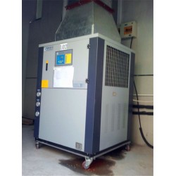 風冷箱式冷水機,上海工業冷水機,超低溫冰水機自帶冷卻風扇,冷凝器采用翅片式,上海工業冷水機,配有水冷凝器,一般為殼管式冷凝器,一般需配套冷卻塔及冷卻水泵使用。