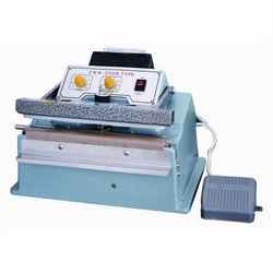 FKR-200臺式鋁架半自動封口機|臺式封口機|鋁架封口機:針對當代封口作業中普通工人勞動強度大,工作效率低下等諸多不足,我廠新研制出此種半自動封口機.它內置電機傳動系統,封口,冷卻時間自動調節,封口自動完成,大大的減輕了工人的勞動強度,且克服了人工使用時,腳踏不均勻等一系列問題.大幅度提高了工人的工作效率和封口的質量. 它配有特大功率變壓器,可以粘接聚乙烯,聚丙烯和多層復合塑料,封口強度牢固,美觀實用,機器使用壽命長.