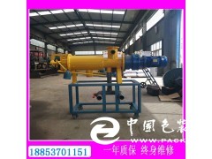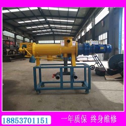 雞糞脫水設備主要由主機、液下切割泵、電控箱、管道等設備組成。主機由機體、篩網、擠壓絞龍、減速機、電機、配重錘、卸料裝置等部件組成。