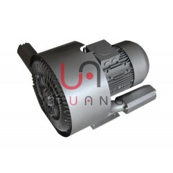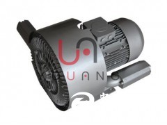 高壓鼓風機的葉輪由數十片葉片組成,它類似龐大的氣輪機的葉輪。葉輪葉片中間的空氣受到了離心力的作用,向葉輪的邊緣運動,在那里空氣進入泵體環行空腔,重新從葉片的起點以同樣的方式再進行循環。葉輪旋轉所產生的循環氣流,以極高的能量離開風機以供使用。風機采用配套電機,結構緊湊,體積小,重量輕,噪音低,送出氣源無水無油。