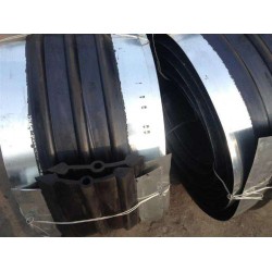 鋼邊橡膠止水帶系以一般可彈性的橡膠和兩頭配有鍍鋅鋼邊所組成的復合件。這種止水帶主要靠中心的橡膠段在混凝土變形縫間被壓縮或拉伸,而起到密封止水作用。一般來說,混凝土和橡膠的粘附力較差,在慣例施工中,又因橡膠是柔軟彈性體,使混凝土在澆筑時不易被掏實,故在混凝土接縫膨脹,扯離、改變時會經常出現鋼邊橡膠止水帶松動和掉落,致使在水頭壓力較高情況下會發生滲漏現象。關于變形縫大的接縫來說,問題就更為突出。選用鍍鋅鋼邊橡膠止水帶,基本上能夠戰勝純橡膠橋式止水帶的這些不足。