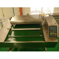 其次,在連續滾動式真空包裝機的操作工位上,調整擺料擋板與封口線到適當距離,把裝好包裝物品的包裝袋(袋口要清潔且余量不小于40mm) 放在工作平臺上。將包裝袋壓條扶起(打開)并將包裝袋的封口位置平整地放于封口硅膠條上,且放穩、鋪開、展平、對齊,兩端留有余地。多袋同室包裝時,各包裝袋之間不能重疊。放下包裝袋壓條,將包裝袋封口余量調至合適長度,人工擺料操作完畢(進入正常運行狀態后,這個過程要在一個工作循環周期內完成)。