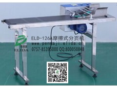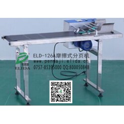 依利達ELD-126A摩擦式分頁機/廣州*飲品合格證全自動分頁機/欽州食品復合包裝袋自動分頁機/畢節真空包裝袋分頁機/安順全自動噴碼機專用分頁機/崇左商標標簽自動分頁機/來賓電子產品使用說明書分頁機械設備:能應用于紙片、名片、標簽、各種材質的卡片、電話卡、IC卡、IP卡、游戲沖值卡、塑料復合包裝袋、紙盒片、紙袋、紙箱等各種厚度各種材質的片狀物品的自動分頁,把整疊的片狀物品高速分離成獨立一片一片的狀態,并由輸送帶輸送出去,便于依利達牌全自動噴碼機、手動熱打碼機或是激光噴碼機逐個噴碼或其他用途。主要功能對象是塑料袋、復合袋、真空包裝袋等軟性產品。