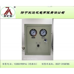 QDFS 氣控式風水聯動噴霧降塵裝置控制箱(以下簡稱控制箱)采用內置風、水控制閥.該裝置用風、水壓力進行調控,對風水比例進行均衡,采用氣控閥(控制箱圖片上的“開關”)控制噴霧裝置的開啟與關閉。控制箱門扇上鑲嵌氣控閥(開關旋鈕)控制噴霧裝置的開啟與關閉,鑲嵌有水壓表、氣壓表,分別顯示調控后的水、氣壓力。