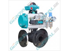 Q644/45F氣動(dòng)三通球閥是一種三通道的回轉(zhuǎn)型球閥, 用于介質(zhì)分流、合流及流向切換,任何一個(gè)管道都可以作為入口或出口。氣動(dòng)三通球閥分有氣動(dòng)三通L型球閥和氣動(dòng)三通T型球閥兩種,可以滿足不同的生產(chǎn)工藝要求。氣動(dòng)三通L型球閥是對(duì)三條管道中的兩條管道進(jìn)行切斷,氣動(dòng)三通T型球閥實(shí)現(xiàn)把三條連通管道進(jìn)行合流與分流。氣動(dòng)三通調(diào)節(jié)球閥與電氣閥門(mén)*配套,輸入4~20mADC信號(hào)及0.4~0.7MPa氣源即可控制運(yùn)轉(zhuǎn),實(shí)現(xiàn)對(duì)壓力、流量、溫度、液位等參數(shù)的調(diào)節(jié)。氣動(dòng)三通換向球閥配行程限位開(kāi)關(guān)、電磁閥、減壓閥及0.4-0.7MPa氣源可實(shí)現(xiàn)開(kāi)關(guān)操作,并送出二對(duì)無(wú)源觸點(diǎn)信號(hào)指示閥門(mén)的開(kāi)關(guān)。氣動(dòng)三通球閥廣泛應(yīng)用于化工,石油,輕紡,電力,食品制藥,制冷,航空,航天,造紙等工業(yè)領(lǐng)域。
