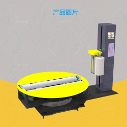 圓筒纏繞機由立柱和轉盤兩個部分組成。轉盤部分由頂出裝置、傳動裝置、滾筒裝置構成。頂出裝置是用氣缸頂出, 為了方便貨物出貨來設計的,無需人工操作,圓筒纏繞機把貨物自動頂出去;傳動部分是靠普通拖輪或是回轉支撐結構帶動貨物轉動,是圓筒纏繞機的核心部分;滾筒裝置由主動輥和從動輥組成,實現貨物的軸向旋轉,從來實現圓筒型貨物的全封閉纏繞裹包。