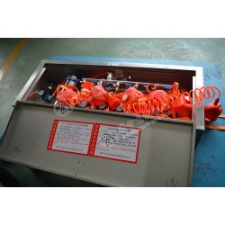 ZYJ-M6型礦井壓風供水自救裝置,此裝置在壓風自救裝置的基礎上增加了,進水管、凈水過濾器、水型壓力表、排水裝置(多組)等。同樣箱體、安裝板、總進氣管、總進水管采用不銹鋼制造而成。一箱六組供水,六組供氣(可根據要求設計組別)。