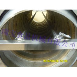 物料由進料斗進入落到滾筒內,隨滾筒的轉動而在滾筒內不斷翻滾相互摩擦,再加上噴淋水的沖洗,使物料表面的污垢和泥砂脫落,由滾筒的篩網洞孔隨噴淋水經排水斗排出。由進料口進入清洗槽內的原料,*先在兩個轉動刷輥產生的渦流中得以清洗,同時,由于兩個刷輥間隙較窄,故其間的水流有較高流速從而該壓力降低,被清洗物料在壓力差和刷輥摩擦作用下通過刷輥, 進一步得到刷洗。