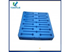 國內已經研發成功高剛度的吹塑托盤,采用常規的川字型結構,可以在高架庫房,高層貨架,各種生產線上使用,其托盤內部不需要設置任何其他的鋼管,動載達到2t以上,靜載達到6t以上,貨架架空載荷可以達到1.5t,使用場地的環境溫度可以在-40°~40°C條件下穩定工作,使用壽命可以達到8~10年。