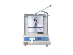 絲杠與立柱上端裝有試樣臺,試樣臺上有擋塊,并有標志試樣尺寸的標尺,按照被測書刊的規格可以很容易確定擋塊位置。側向有可以起落的壓樣塊,壓下杠桿使壓樣塊抬起,把被測書刊推入試樣臺中縫后,放下壓樣塊,給被測書刊一定壓力。