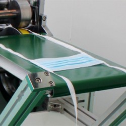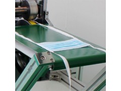 綁帶式口罩機一般由8大部分組成:料盤、機架(帶工作臺板及面罩)、包綁帶及花輪壓邊成型部分、口罩傳出部分、動力傳動部分、超聲波發生器、超聲波換能器系統、電氣控制部分。采用超聲波焊接方式,于機臺上設置輸送裝置,于輸送裝置輸入口罩半成品,經過拉筒包邊,再以超聲波花輪壓合后,將綁帶切斷,從而輸出成品,只需一人將口罩本體置於機器的傳輸帶上,其余后續工作均全自動完成。