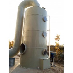 噴淋塔是由塔體、噴淋系統、除霧層等組件組成。通過噴淋系統快速均勻地向下噴出水,粉塵會與水結合,后沉淀到水池里。噴淋塔凈化效率高達98%以上,在粉塵濃度過高的時候可以增加一層噴淋系統,這樣也會增加凈化效率。
