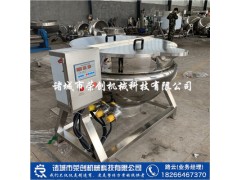 辣椒醬/豆瓣醬/醬料包熬醬夾層鍋設備 帶攪拌可刮底不粘鍋特點:本鍋體攪拌部分采用一次成形的不銹鋼鍋體,*證了鍋內的平整光滑。采用蒸汽、液化氣、天然氣等加熱方式。刮邊采用彈簧式,刮底采用自重式,使鍋體與攪拌葉片緊密接觸,使物料攪拌均勻不粘鍋。動力采用無極調速器與渦輪、蝸桿、減速機的組合,傳動部位公轉與自傳的不整數傳動比,使鍋內攪拌無死角。使用傳動與密封結構,使傳動部位與鍋臺潔凈、衛生。本機采用液壓式翻臂、翻鍋出料,省力、省時、省工,不失為性能優良的食品化工加工設備。