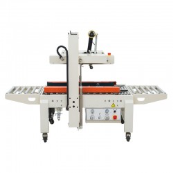 可一次完成上下封箱動作,采用印字膠帶,更可提高產品形象。左右驅動系統確保重紙箱輸送,機芯上下可互換,皮帶的張力、膠粘帶張力調整容易,可適用于軟硬紙箱,可單機也可流水線使用。