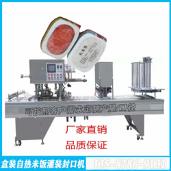 自熱米飯真空封口機適用于各種米飯盒等產品的生產,具有自動灌米、自動灌水、自動光電對膜、紫外線殺菌、自動抽真空、自動封口、自動切膜、自動收廢膜和自動輸出盒子等功能。整機克采用可編程邏輯控制器、觸摸屏、氣動控制元件、智能數顯溫度控制系統,具有封口整齊美觀,盒子衛生,故障率低等特點,是餐飲企業自動化生產的*選產品。