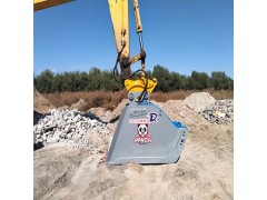 顎式破碎斗是一種機架外形成鏟斗狀的新型液壓破碎屬具,作為挖掘機的配套屬具,在使用時,該裝置以挖機臂為操作載體鏟裝物料,并對鏟裝的建筑垃圾或物料進行破碎處理,從而可以得到所需求的物料塊度以及可回收有用材料。通過現場挖掘、現場破碎、現場回收利用,實現建筑垃圾資源化、減量化、無害化,不僅大大減少了運輸量,節省填埋費,提高了回收利用率,而且節約了大量填埋用地,減少對環境的污染,還能減少對天然砂石的開采,保護了自然資源,符合可持續發展戰略。該裝置具有結構靈活, 工作可靠,適應性強。成本低,易維護等突出優點,還可廣泛應用于廣山開采、道路維護與建設等行業中。