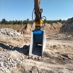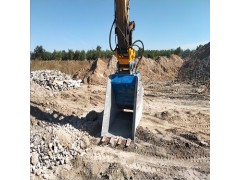 顎式破碎斗是一種機架外形成鏟斗狀的新型液壓破碎屬具,作為挖掘機的配套屬具,在使用時,該裝置以挖機臂為操作載體鏟裝物料,并對鏟裝的建筑垃圾或物料進行破碎處理,從而可以得到所需求的物料塊度以及可回收有用材料。通過現場挖掘、現場破碎、現場回收利用,實現建筑垃圾資源化、減量化、無害化,不僅大大減少了運輸量,節省填埋費,提高了回收利用率,而且節約了大量填埋用地,減少對環境的污染,還能減少對天然砂石的開采,保護了自然資源,符合可持續發展戰略。該裝置具有結構靈活, 工作可靠,適應性強。成本低,易維護等突出優點,還可廣泛應用于廣山開采、道路維護與建設等行業中。
