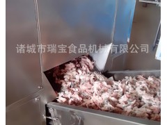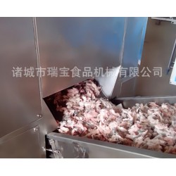 凍肉破碎機是專門破碎-18℃、-24℃凍肉而研制的設備,可直接切成塊狀或片狀或者破碎。生產能力每小時6-9噸,此機極大的減少了肉制品的前期工作量,節約了成本和時間,以及細菌的感染率,提高了保質期。此機結構堅固、效率高、維修方便。