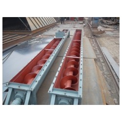 旋轉的螺旋葉片將物料推移而進行輸送,使物料不與螺旋輸送機葉片一起旋轉的力是物料自身重量和螺旋輸送機機殼對物料的摩擦阻力。葉片的面型根據輸送物料的不同有實體面型、帶式面型、葉片面型等型式。螺旋輸送機的螺旋軸在物料運動方向的終端有止推軸承以隨物料給螺旋的軸向反力,在機長較長時,應加中間吊掛軸承。
