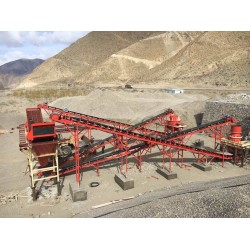 四、具體生產流程為:大塊石料通過給料機給到鄂破進行粗碎,然后經輸送帶輸送到圓錐破進行中細碎,破碎到5公分以下,經過振動篩篩分出12、13、24等規格的石子,大塊的石塊再返回到圓錐破繼續粉碎。如果需要生產沙子,經圓錐破破碎出來的石子可經由制砂機進行粉碎,制成5mm以下的沙粒。