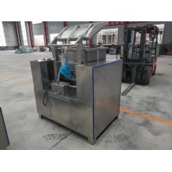 小型真空和面機器主要適用于各種面食產品的加工,可根據面食產品所使用的小麥粉的特性選擇不同形式的真空和面機器價格不同,設備和面效果也不同。結構:和面機是由機架、機體、可95度傾斜面箱、面箱蓋、機械傳動部分、高強度真空泵和電器部分組成。 材質:機架、機體、和面槳葉、面箱、面箱蓋為SUS304不銹鋼,面箱內表面和雙絞龍和面槳葉為鏡面拋光處理。特點:和面采用雙絞龍或板式攪拌器,配備一臺高強度真空泵,本機同鏈輪轉動,帶動槽內擺桿轉動,起到面粉混合攪拌的功能,料斗開蓋、倒箱采用液壓控制、定位準確。