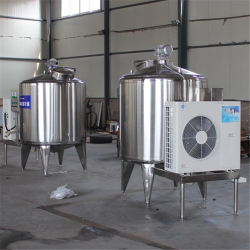 制冷罐引進九十年代國外先進技術。直壁大面積冷卻,通過全自動控制系統,一步到位觀察操作,使被冷原奶迅速降至所需溫度并續保恒溫。防止細菌繁殖產生,保持原乳處于A*乳狀態。
