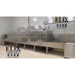 微波五谷烘焙設備是將被加熱物料本身作為發熱體,微波的焙烤作用可以瞬時深入到物料內部,使物料內外同時受熱,不需要熱傳導的過程,所以溫升極快,大大縮短了加熱時間,所需時間一般為常規方法的1/4左右。 烘烤和其他食品加工一樣,是復雜的物理化學體系,需要有序發生并有合適的時間/溫度條件。微波快速加熱會造成焙烤產品的斷裂、過度膨。 微波加熱速度快,物料內部氣體(空氣)溫度急劇上升,由于傳質速度慢,受熱氣體處于高度受壓狀態,而有膨脹的趨勢,達到一定的壓強時,物料就會發生膨脹。 微波烘焙設備具備自動控溫系統,自動控制微波密度系統、自動報警系統、視頻監視系統、傳輸帶自動糾偏系統、傳輸變頻調速系統、物料控制系統、PLC控制系統等。該設備流水作業,操作簡單、產量高、環保、加熱速度快、加熱均勻、可控性好,24小時連續工作。微波烘焙設備可用于豆類產品烘烤、膨化、烘干、殺菌等加工處理,比如:鷹嘴豆、蕓豆、黑豆、蠶豆、豌豆、豇豆、紅豆、綠豆、赤豆產品及雜糧食品等的應用。 五谷雜糧用什么烘焙出來的比較健康 微波烘焙設備 五谷雜糧微波烘焙設備微波黃豆低溫烘焙設備可用于豆類產品烘焙、膨化、烘干、殺菌、熟化等加工處理,
