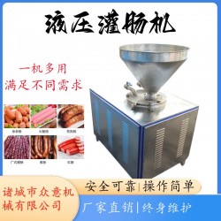 加工香腸全套設備全自動液壓香腸灌腸機適用各種腸類制品的灌制。尤其對較干的料餡相對其他灌腸機效率更佳。整機采用304不銹鋼,采用液壓機推料,設備出廠配備多個型號的出料管,符合廣大客戶的不同要求。可以灌裝大小不一的各種原料,肉塊、肉絲、肉片、肉泥等。
